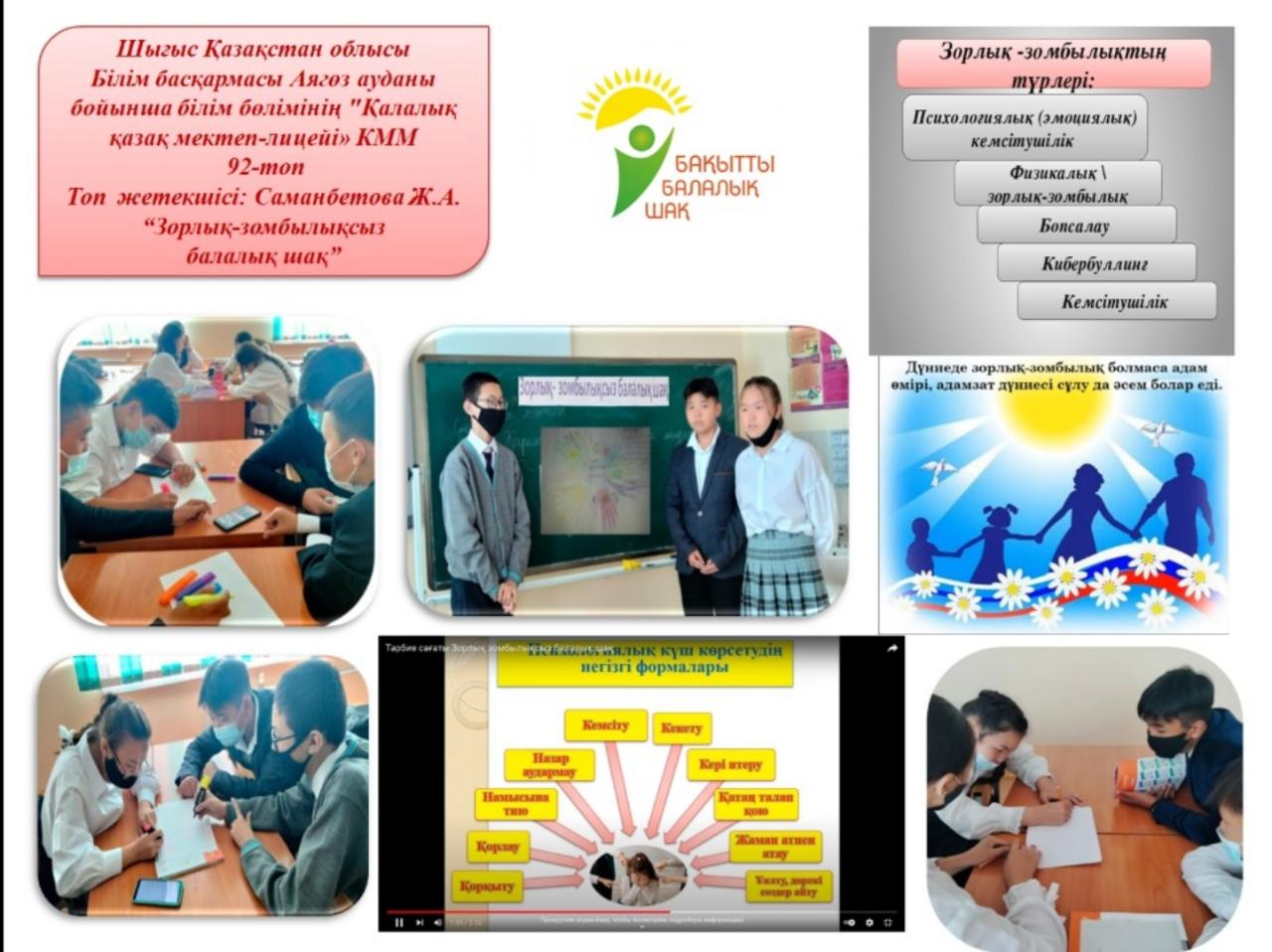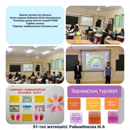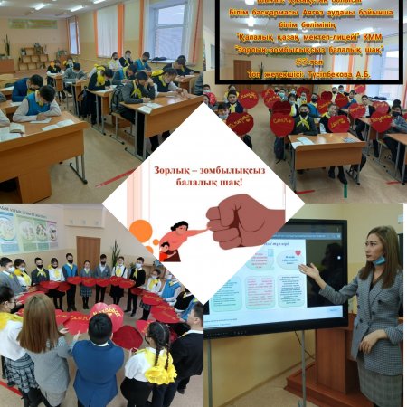 "Зорлық - зомбылықсыз балалық шақ" тәрбие сағаты