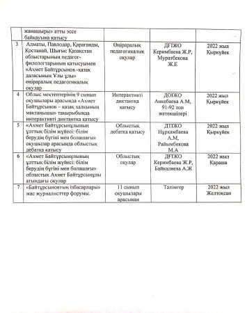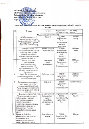 Ахмет Байтұрсынұлының 150 жылдық мерейтойына арналған мектепішілік іс- шаралар жоспары