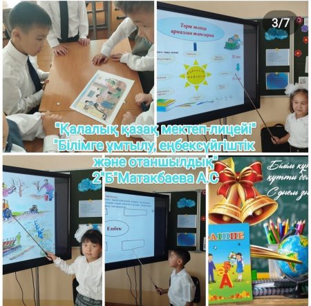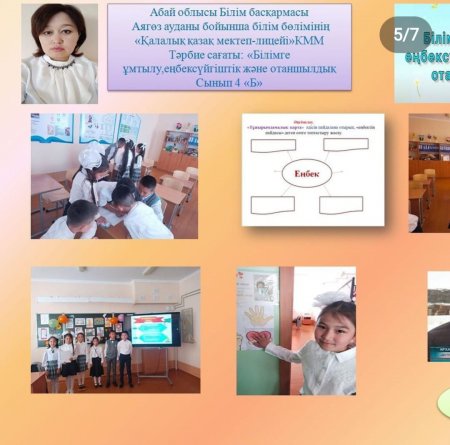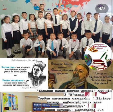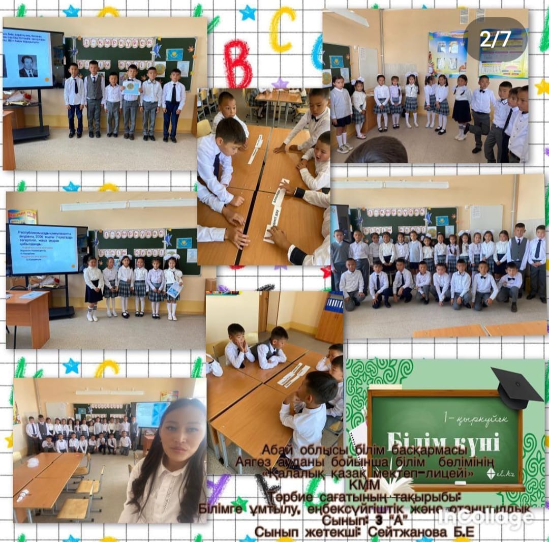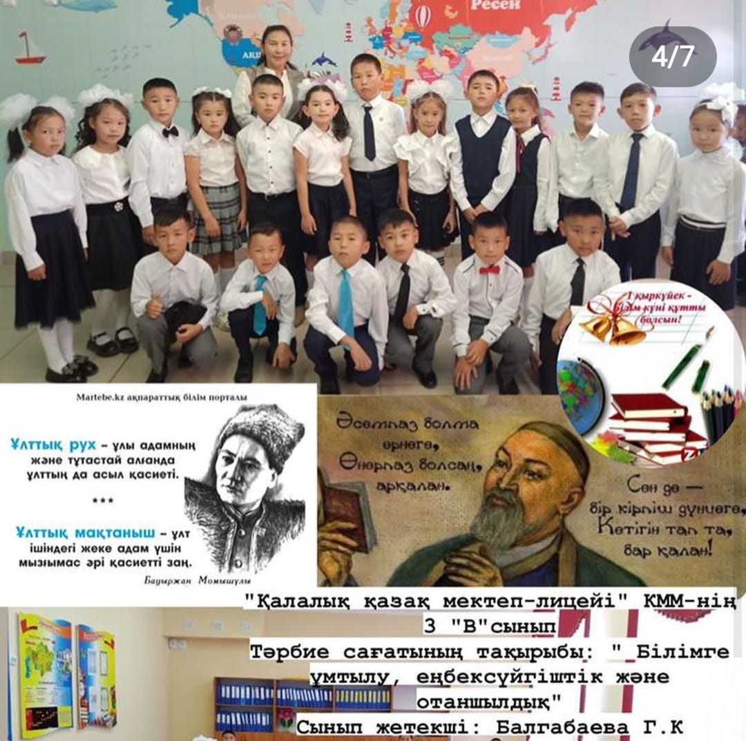 "Қалалық қазақ мектеп-лицейі" КММ-нің барлық сыныптарында «Білімге ұмтылу еңбексүйгіштік және отаншылдық» тақырыбында алғашқы тәрбие сағаттары өткізілді. Мақсаты: «Еңбек» адамгершілік құндылығы туралы түсініктерін кеңейту; еңбектің адам өміріндегі мәні туралы түсінік беру; еңбек етуге қызығушылықтарын дамыту; еңбексүйгіштікке тәрбиелеу. Тәрбие сағаттарында тақырып бойынша бейнероликтер көрсетіліп, әртүрлі әдіс-тәсілдер пайдаланылып, топтық, жұптық және жеке жұмыстар орындалды.