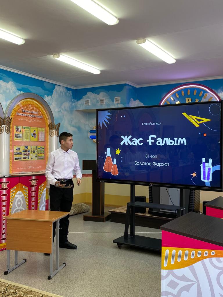 «Жас ғалым» атағын 51- топ оқушысы Абылқасымов Ерасыл иеленді.