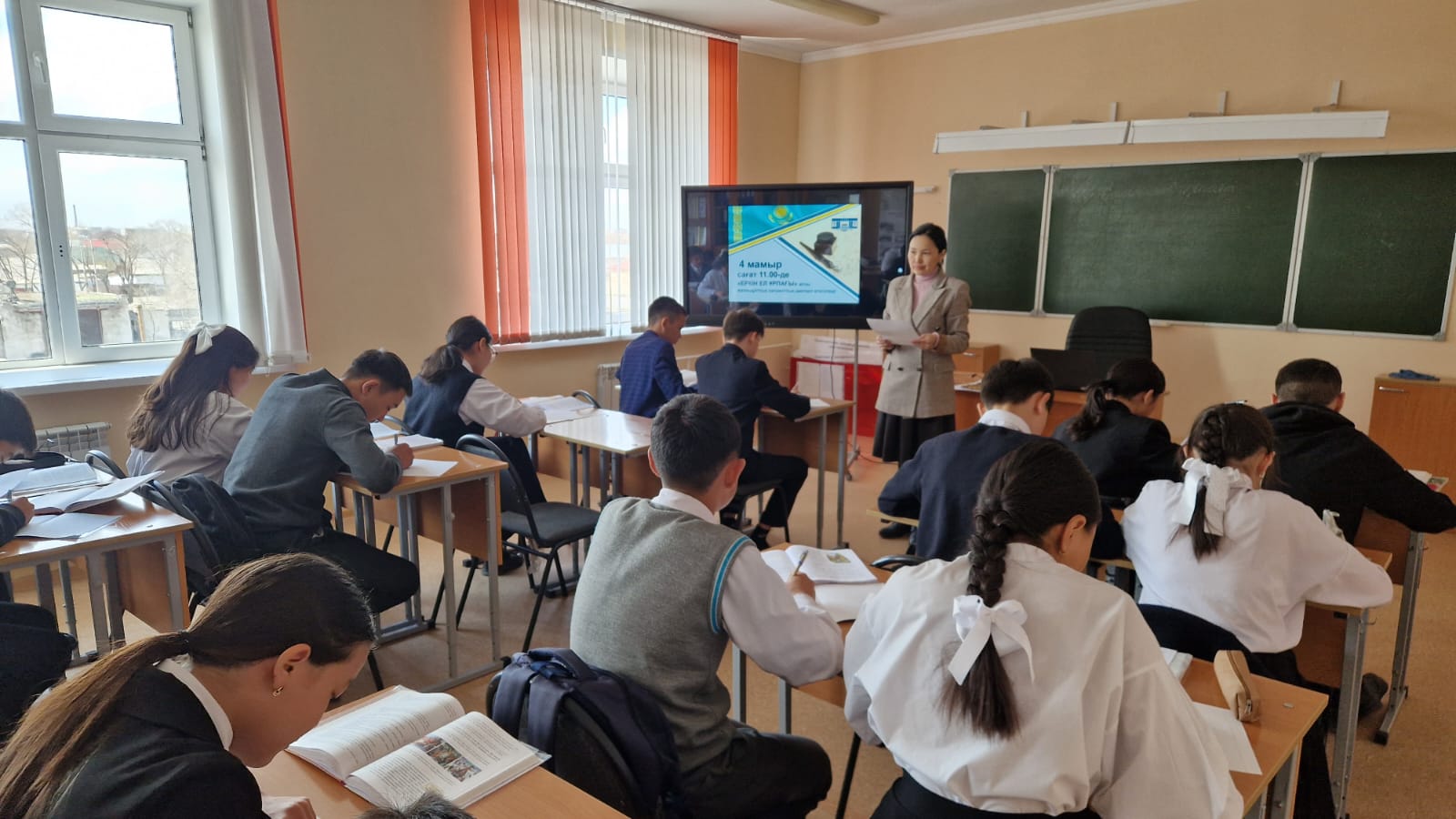 КММ-сінде Мамыр мерекелері мен Жеңіс күні қарсаңында ұстаздар мен оқушылардың қатысуымен “Еркін ел ұрпағы” атты жалпыұлттық патриоттық диктант өткізілді