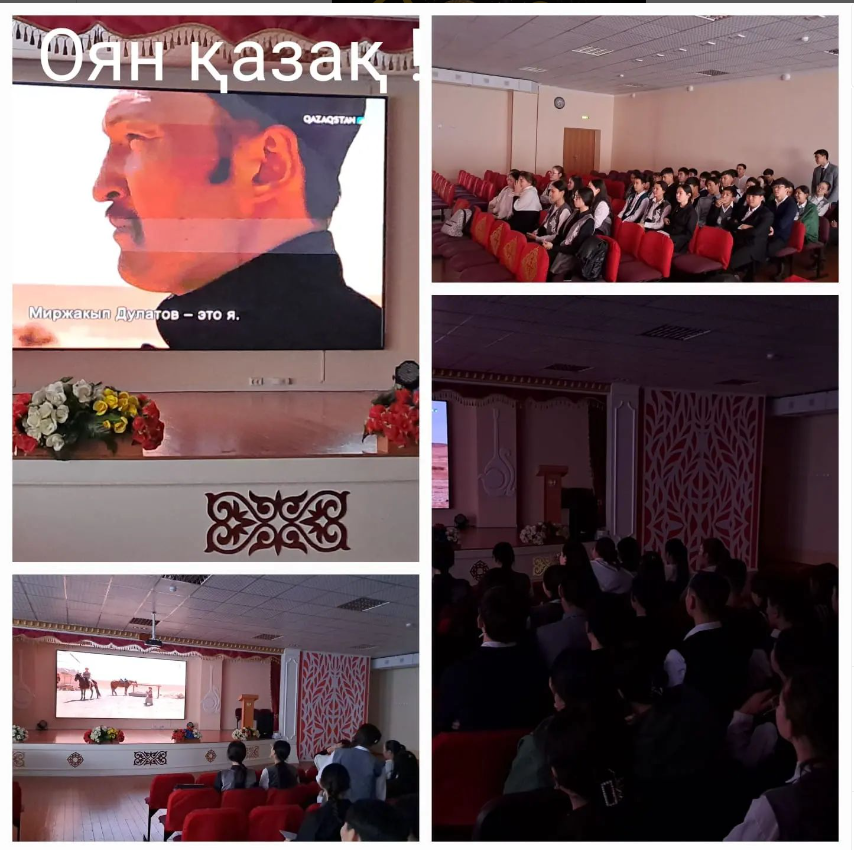"Қалалық қазақ мектеп-лицейі" КММ-нде қоғамдық пәндер апталығы аясында 10-11 сынып оқушыларына Міржақып Дулатұлының "Оян қазақ !" тарихи фильмі көрсетілді