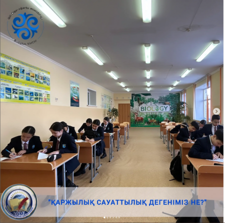 "Қаржылық сауаттылық дегеніміз не?" тақырыбында мектеп оқушылары мен қызметкерлері бірыңғай диктант жазды.