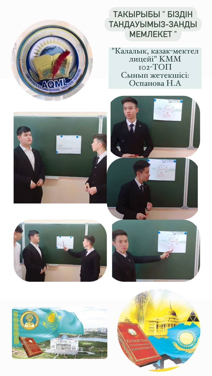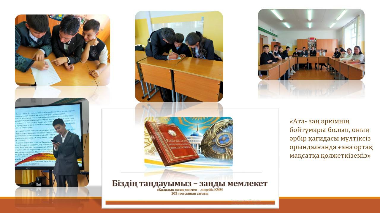 “Біздің таңдауымыз-Заңды мемлекет” тақырыбында тәрбие сағаттары