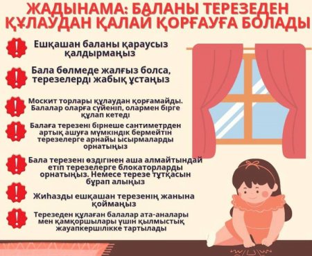 ауіпсіздік талаптарын сақтау және балалардың терезеден құлауына жол бермеу