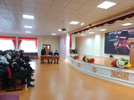 Абай облысы білім басқармасы Аягөз ауданы білім бөлімінің “Қалалық қазақ мектеп-лицейі” КММ-де 10-11 сынып оқушыларымен бірге құқық бұзушылықтың алдын алу, нашақорлық, жол көлік жарақаттануы, қауіпсіз мінез-құлық, дағдарыс жағдайындағы іс-әрекеттердің алдын алу мақсатында полиция қызметкерлерімен кездесу өткізілді. Кездесуге Аягөз АПБ жергілікті полиция қызметі бөлімшесі бастығы Турысбеков Дулат, Аягөз АПБ кәмелетке толмағандардың істері жөніндегі учаскелік полиция инспекторы Толегенова Асель, Аягөз аудандық прокуратурасының прокуроры Тоқтасынов Ерлан қатысты.