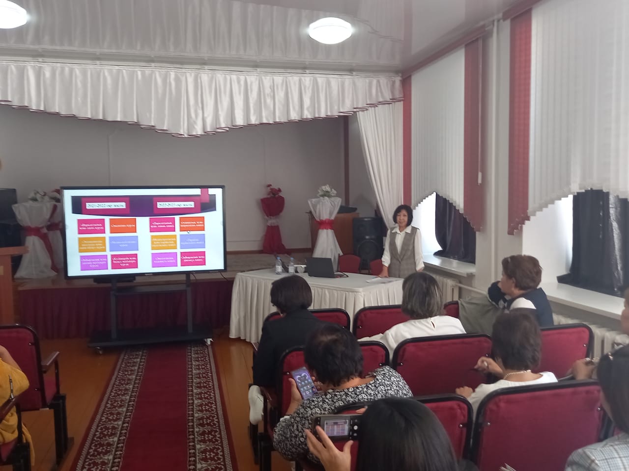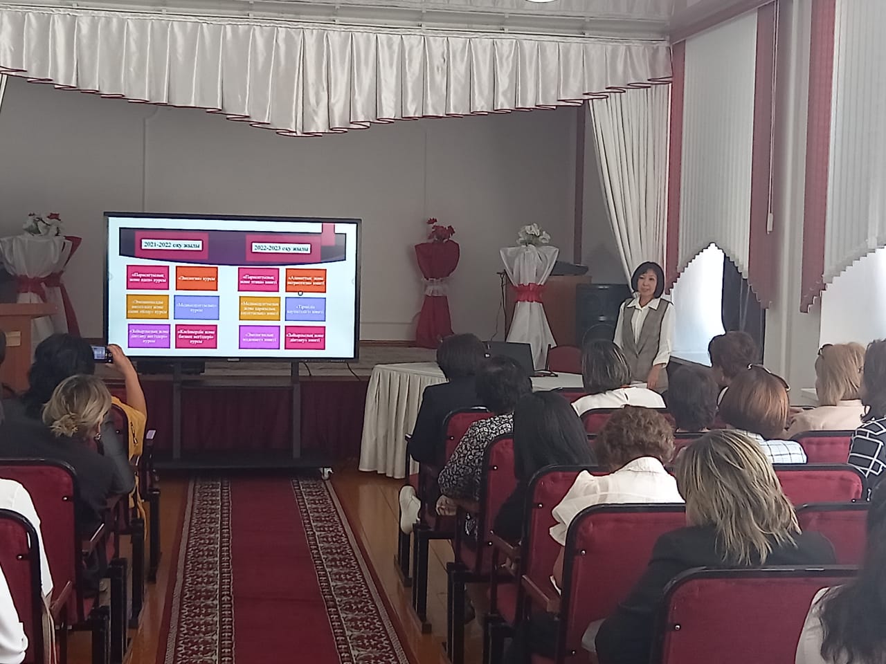 Директордың оқу ісі жөніндегі орынбасарларының секциялық отырысы «Педагогикалық студия» форматында өтті. Директордың оқу -тәрбие ісі жөніндегі орынбасары А.М.Анкебаева «Жаһандық құзіреттілік курсының ерекшеліктері» туралы баяндама жасап, әріптестерімен тәжірибе алмасты.
