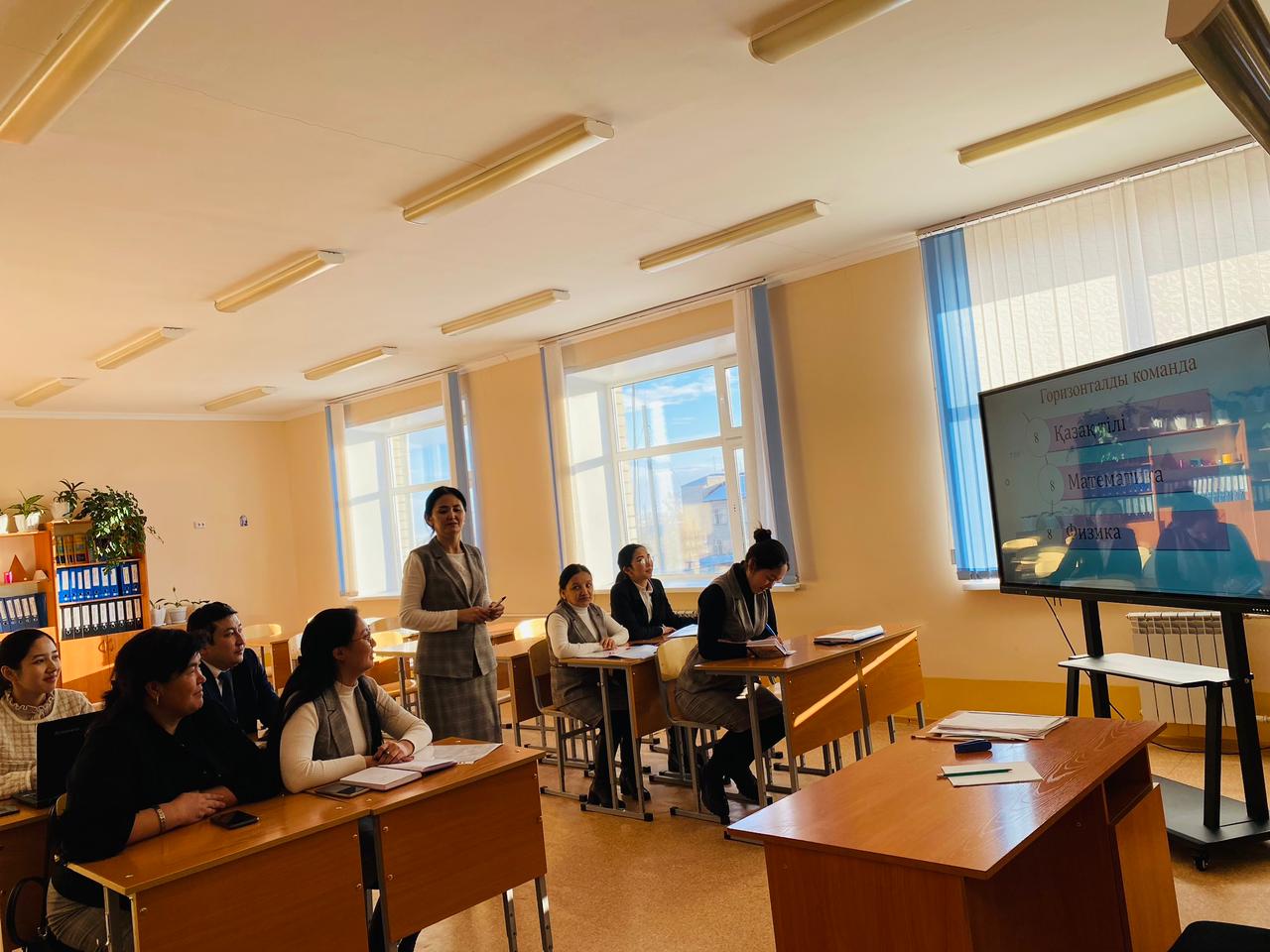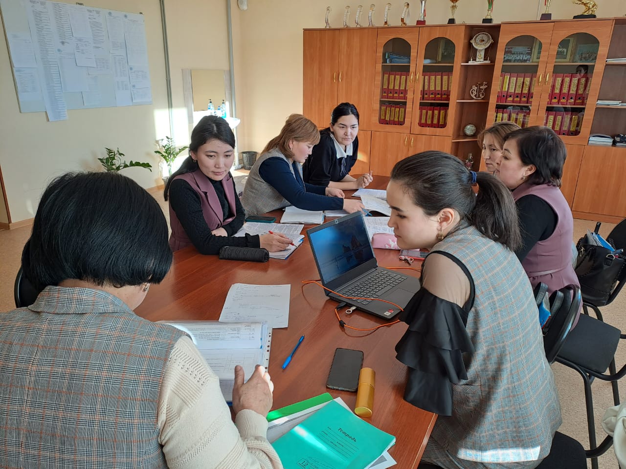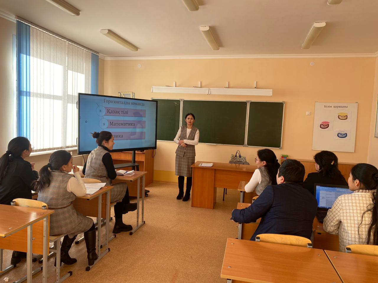 2023 жылдың 16 қаңтарында директорлың оқу -тәрбие ісі жөніндегі орынбасары Ә. М. Анкебаеваның ұйымдастыруымен мектепішілік пән бірлестік мүшелерінің кезектен тыс отырысы өтті. Мақсаты: Горизонталды және вертикалды жоспарлау. Бірлестік мүшелері негізгі кілтті мақсаттарды анықтап, БЖБ, ТЖБ материалдарын әзірлеу бойынша вертикальды және горизонтальды командамен жұмыс жүргізді.