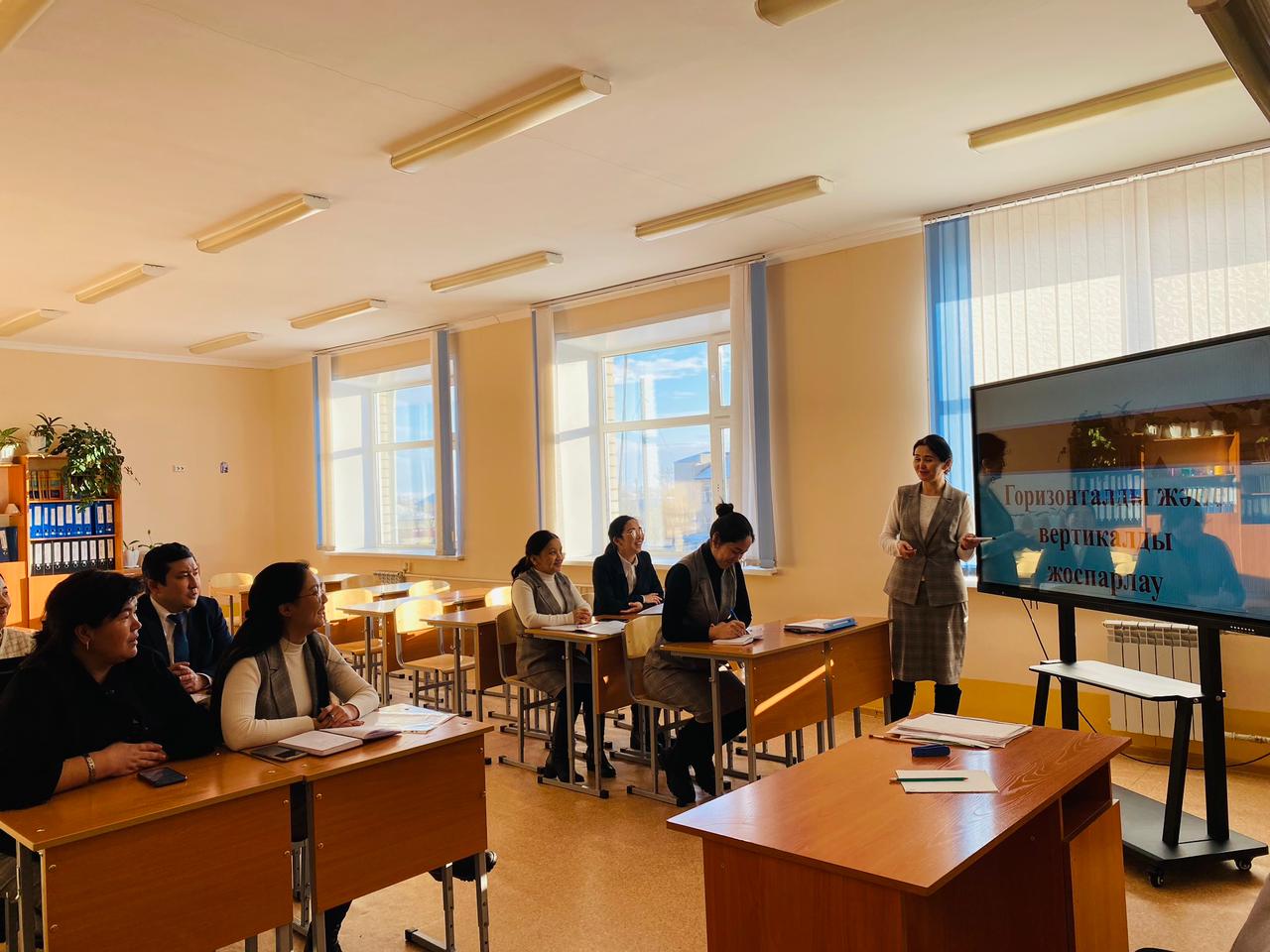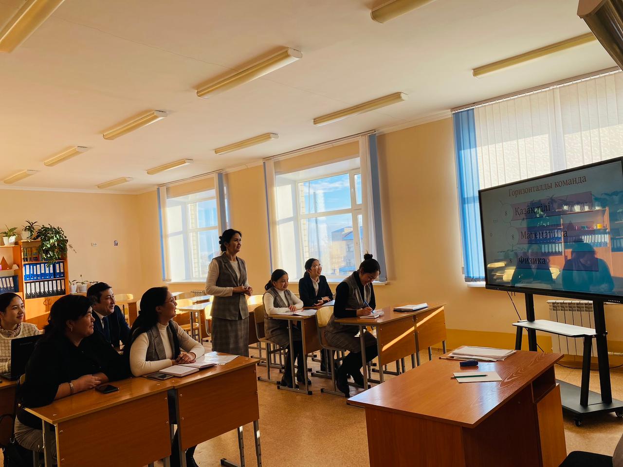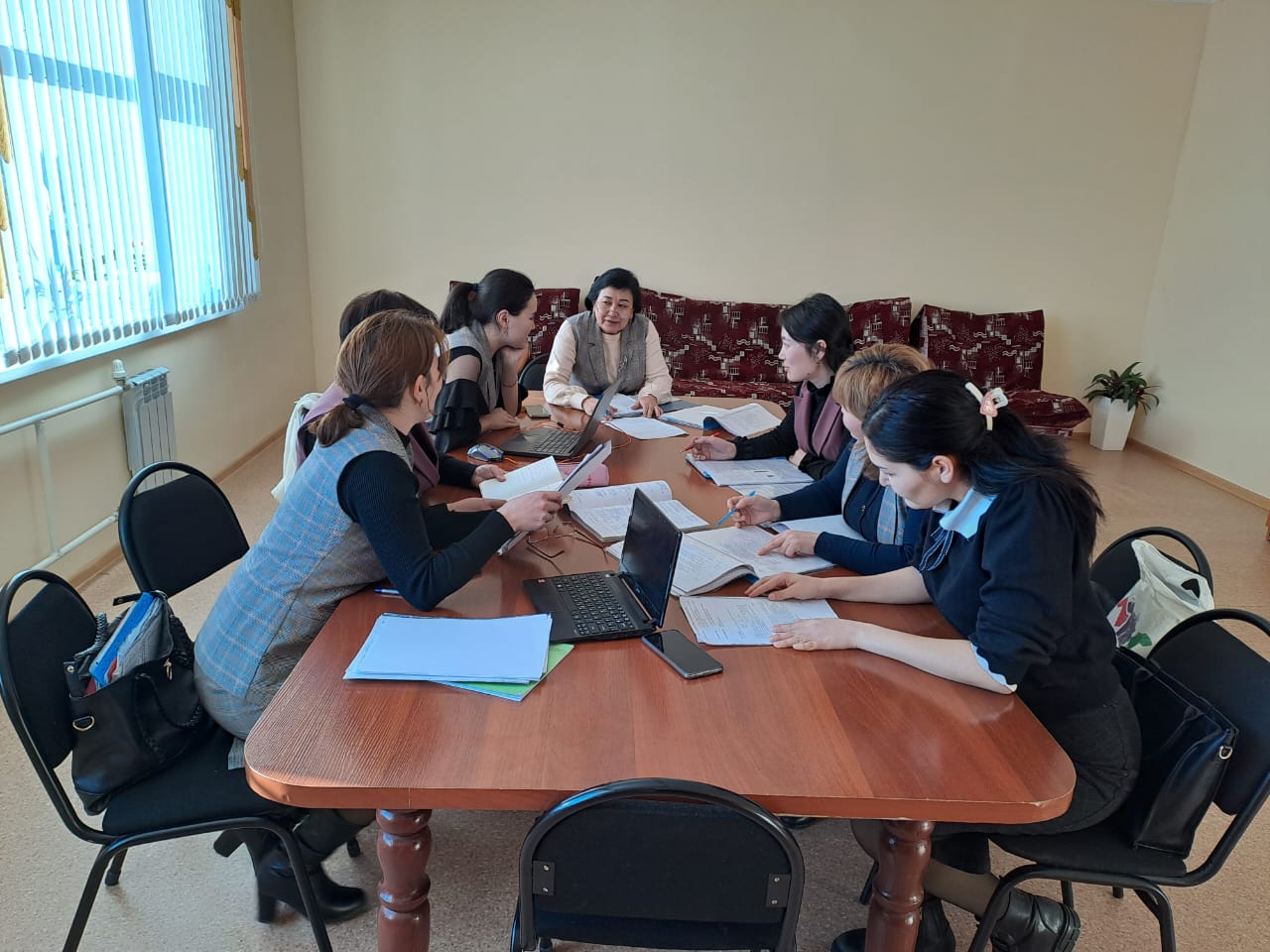 2023 жылдың 16 қаңтарында директорлың оқу -тәрбие ісі жөніндегі орынбасары Ә. М. Анкебаеваның ұйымдастыруымен мектепішілік пән бірлестік мүшелерінің кезектен тыс отырысы өтті. Мақсаты: Горизонталды және вертикалды жоспарлау. Бірлестік мүшелері негізгі кілтті мақсаттарды анықтап, БЖБ, ТЖБ материалдарын әзірлеу бойынша вертикальды және горизонтальды командамен жұмыс жүргізді.