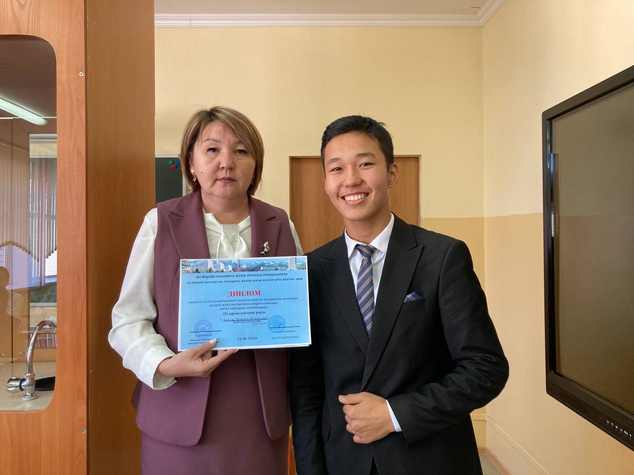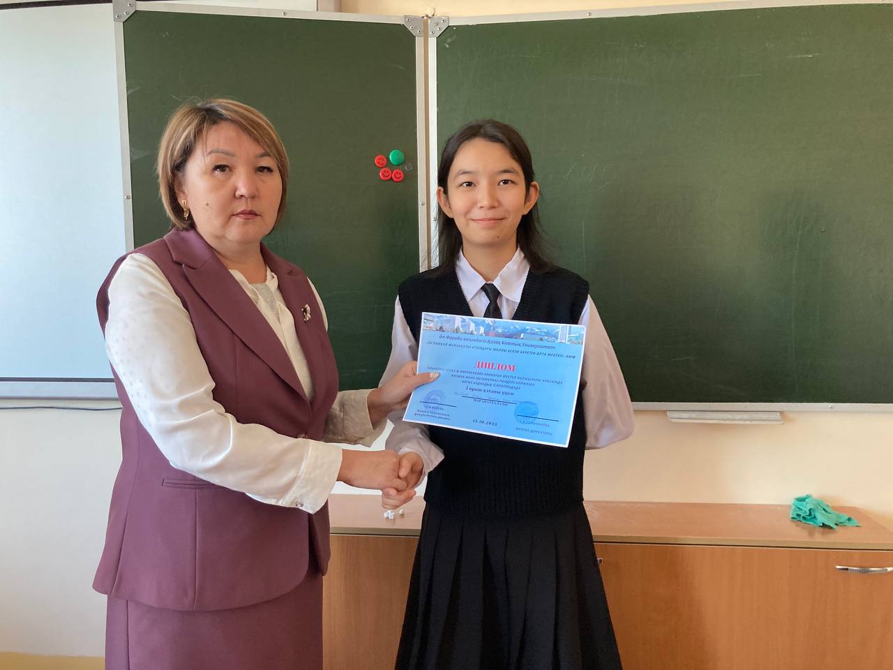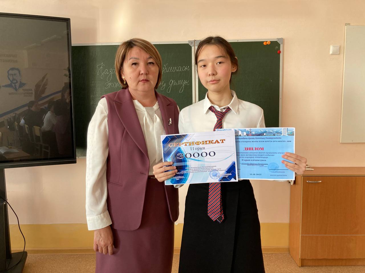 13 қазан 2023 жылы Абай облысы Аягөз ауданы Баршатас ауылы «Оспанқұл Меңаяқұлы атындағы жалпы орта білім беретін мектебі» КММ-де «Ұлағатты ұстаз Жеңіс Өмірбековке арналған мектеп оқушылары арасында физика және математика пәндері бойынша Аягөз аудандық олимпиада» 5-мәрте өтті. Мақсаты: дарынды оқушыларды анықтаудың оңтайлы жағдайларын жасау, олардың одан әрі зияткерлік дамуына және кәсіби бағдарлануына, оқушылар арасында физика-математика және IT ғылымдарының тарауына ықпал ету және насихаттау. «Қалалық қазақ мектеп-лицейі» КММ-нен 3 оқушы қатысып, жүлделі орындарға ие болды. Нәтижесінде: I-орын алған 9-сынып оқушысы Сағибекова Айгерим (cертификат – 60000 теңге); II-орын алған 11-сынып оқушысы Абзалова Нұрдана (cертификат – 30000 теңге); III- орын алған 10-сынып оқушысы Амангелді Нұрсұлтан (cертификат – 20000 теңге). Жеңімпаздарды шын жүректен құттықтаймыз.
