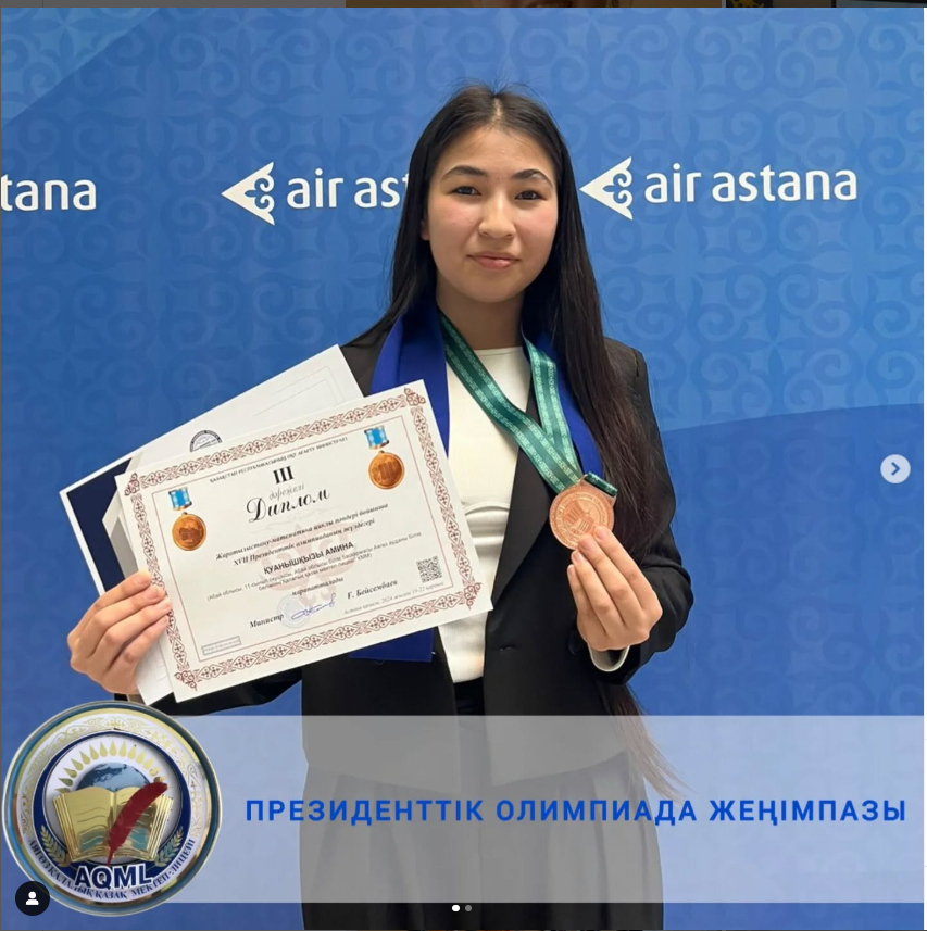 ✔️ Ережеге сәйкес Олимпиада үш кезеңде өтті. Абай облысы атынан, Аягөз ауданының «Қалалық қазақ мектеп-лицейі» КММ-нің 11-сынып оқушысы Қуанышқызы Амина жалпы есебпен 3113 оқушы ішінен ірікту кезеңінің нәтижесінде, олимпиаданың Республикалық кезеңіне жолдама алған 190 оқушының арасынан топ жарып, жүлделі III- орын мен қола медалін иеленді. 🥉🇰🇿❤️