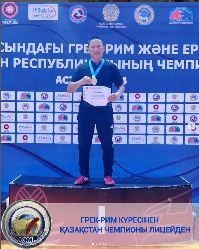 Осы жарыста мектебіміздің намысын қорғап додаға түскен Дене тәрбиесі пәні мұғалімі :Тауырбеков Саят 70 кг салмақта күресіп Грек -рим күресінен Қазақстан чемпионы атанды.