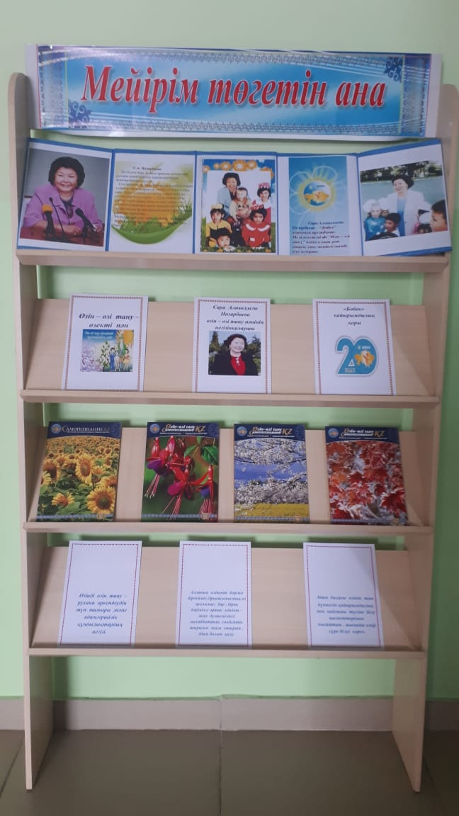 "Қалалық қазақ мектеп-лицейі"КММ-нде "Өзін-өзі тану"рухани-адамгершілік білім беру бағдарламасы авторының қызметі туралы"Мейірім төгетін ана"тақырыбында кітаптар көрмесі қойылды.
