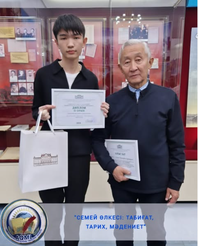 🔰 Абай облысының мәдениет, тілдерді дамыту және архив ісі басқармасы Семей қаласының облыстық тарихи-өлкетану музейі ұйымдастырған “Семей өлкесі: Табиғат, тарих, мәдениет” ІІІ облыстық жастар ғылыми-өлкетану конференциясында 9-сынып оқушысы Ахметқанов Азамат жүлделі 2-орынды диплом, бағалы сыйлықтармен марапатталды.
