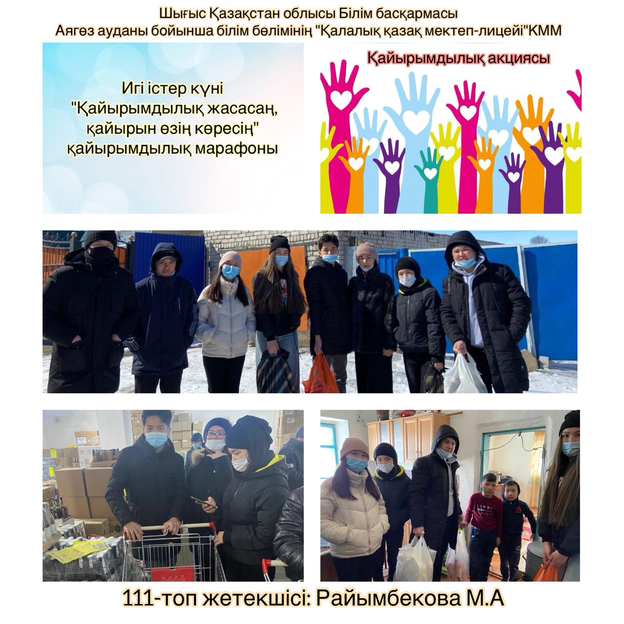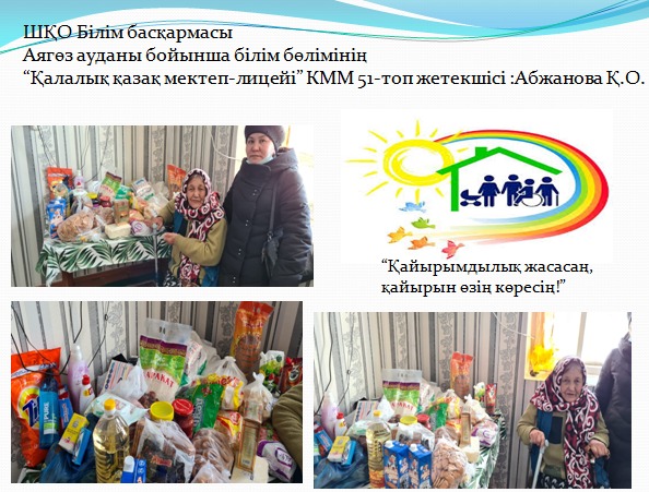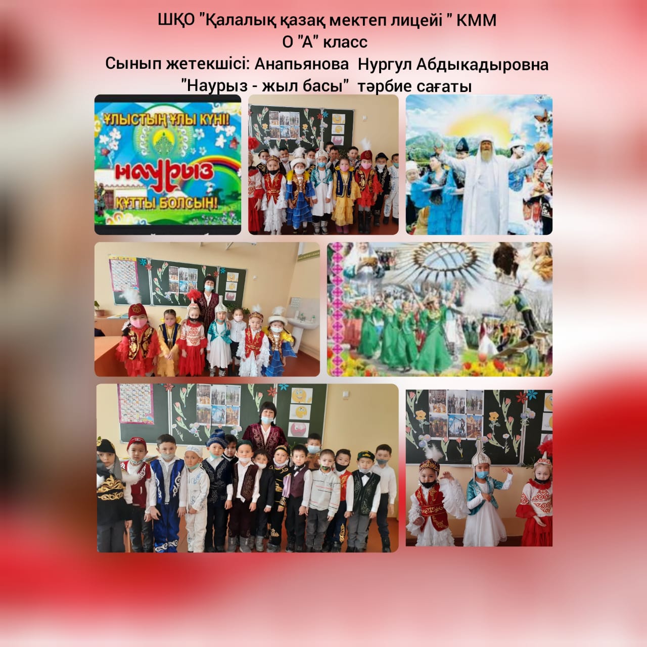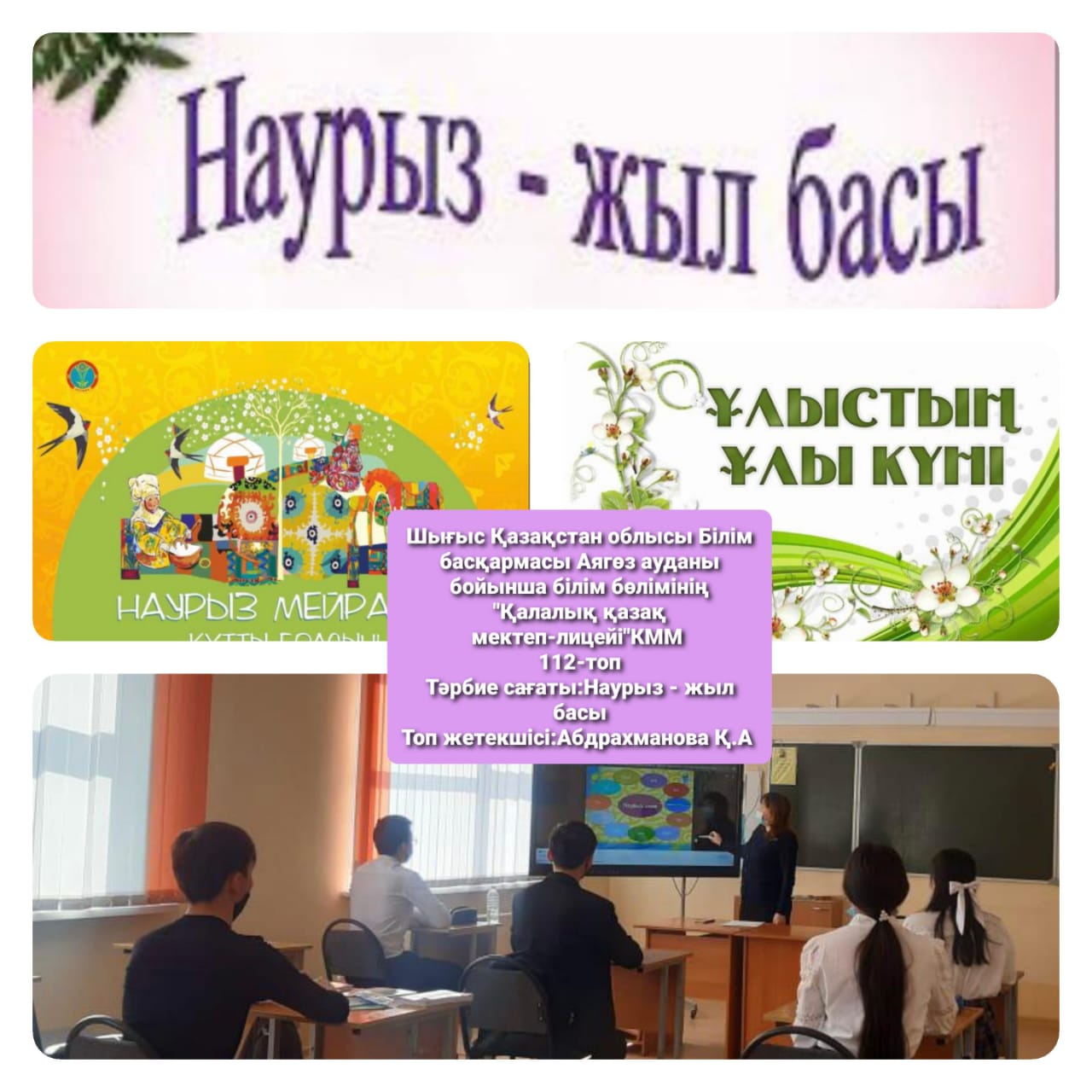 «Қалалық қазақ мектеп-лицейі»КММ-де «Наурыз-2021» іс-шаралары атап өтілді. 10 күнге арналып, әр күнге атау беріліп, төмендегідей жұмыстар жүргізілді. Бірінші күні «Көрісу күні» бастауыш сынып оқушылары қазақтың ұлттық мейрамы «Наурыз» туралы бейнероликтер шеруін жасады. Кітапханада қазақ халқының ру атауларына қатысты тәрбие сағаты жүргізілді. Наурыз мерекесіне арналған «Қуыршақ» театрының кезекті қойылымы қойылды.Жетекшісі - А.Лебаева. Көркем еңбек пәні мұғалімдері ұлттық қол өнер бұйымдарынан көрме ұйымдастырды. «Қайырымдылық жасасаң, қайырымын өзің көресің» атты қайырымдылық марафоны өткізілді. Онда әлеуметтік жағдайы төмен отбасыларға мектеп-лицей ата-аналары демеушілік көмек көрсетіліп, қайырымдылық танытты. «Таза табиғат акциясына әр жанұядан 1 ағаш» челленджі ұйымдастырылды. Дене шынықтыру пәні мұғалімдері "Шымырлық күні" ұлттық спорт ойын түрлерінен жарыстар өткізді. Ал айтыс өнерінің жойылып бара жатқан «Бәдік айтыс», «Жұмбақ айтыс», «Салт айтыс», «Өтірік айтыс» түрлерін 5-6 сынып жетекшілері оқушыларына насихаттады. Барлық сыныптарда Ұлыстың ұлы күніне арналған тәрбие сағаттары өткізілді. Ұлыс оң болсын, ақ мол болсын!