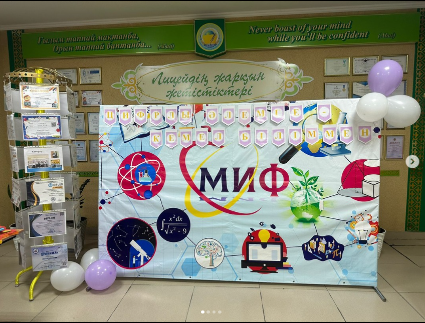 Абай облысы ББ Аягөз ауданы білім бөлімінің " Қалалық қазақ мектеп-лицейі" КММ - нде " Цифрлы әлемге - кемел біліммен" атты математика, физика, информатика пәндер бірлестігінің апталығының ашылу салтанаты өтті. Апталықтың мақсаты: Оқушылардың ой-өрісі мен таным белсенділіктерін жан-жақты жетілдіру.