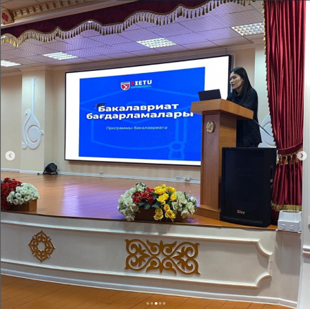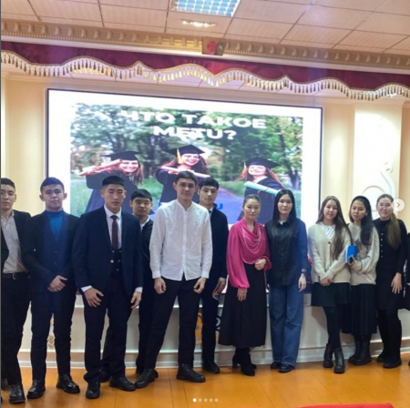 Мектебіміздің үздік оқушыларының бірі, мақтан тұтарлық оқушысы болған қазіргі таңда Халықаралық Инженерлік -Технологиялық университетінің белсенді студенттерінің бірі Абутова Гүлназбен 10-11 сыныптардың оқушыларымен кездесуі өтті. Гүлназ өзінің оқу орын жайлы және мектеп оқушыларына мамандықты таңдауы туралы қысқаша ақпарат, ол жетістікке қалай қол жеткізгендігі, оқу орнының ерекшіліктері мен білім сапасының тереңдігі туралы кеңінен баяндап берді.