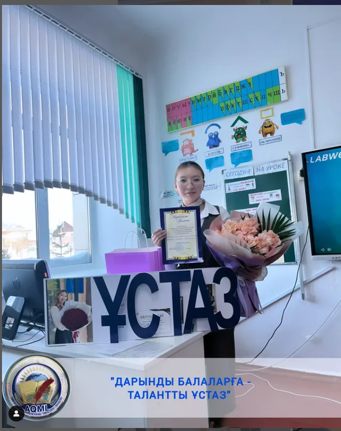 ✔️ «Қалалық қазақ мектеп-лицейінен» бастауыш сынып мұғалімі Ашимова Аяулым Шалқарқызы қатысып,жүлделі 1-орын иеленді.