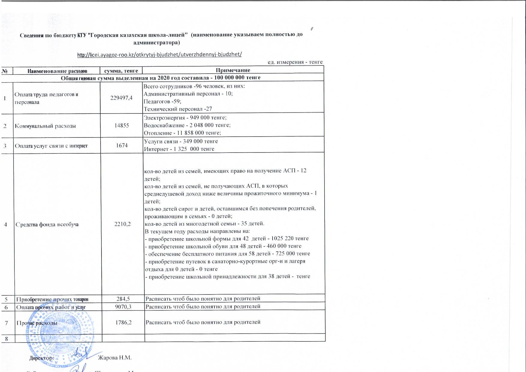 » Аягөз аудандық білім бөлімінің "Қалалық қазақ мектеп-лицейі" КММ-нің 01.11.2020 жылғы ашық бюджеті