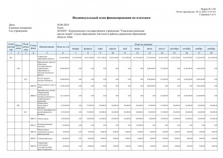 Индивидуальный план финансирования по платежам