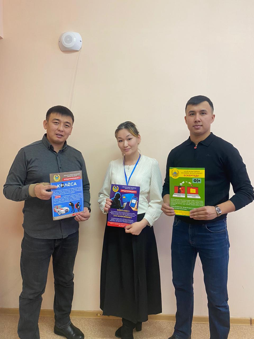 ІІМ қызметкерлері осы қылмыстың алдын алу, болдырмау мақсатында жасалып жатқан профилактикалық жұмыстар жайлы айтып өтті. Осы орайда айта кететіні, Ішкі істер министрлігінің бастамасымен профилактикалық сипаттағы жұмыстар кең жүргізілуде, мәселен елімізде кең тараған сауда платформаларының сайттарында азаматтарды алаяқтардан сақтану туралы ескертулер орналастырылғандығы, интернет-сауданың дамуына байланысты жарнама сайттарының (Kolesa.kz, Krisha.kz, Market) басшылығымен жалған хабарландырулар орналастыратын пайдаланушылар туралы ақпарат алмасу, сондай-ақ азаматтардың алаяқтық схемалары туралы ақпараттандыру мәселелері бойынша өзара іс-қимыл жасасу жолға қойылғандығы туралы айтып, таратпа парақшалары мектеп қабырғаларына ілінді.