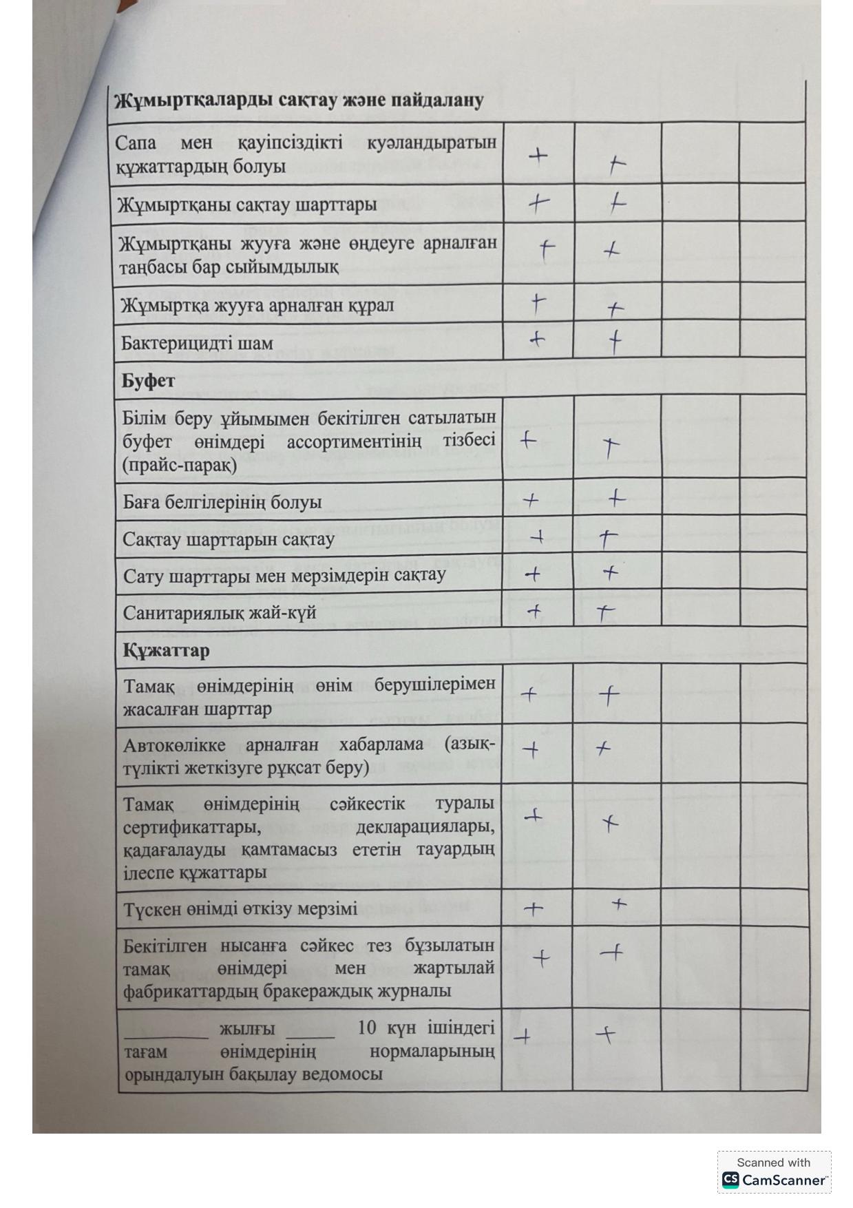 » Тамақтану құжаттары