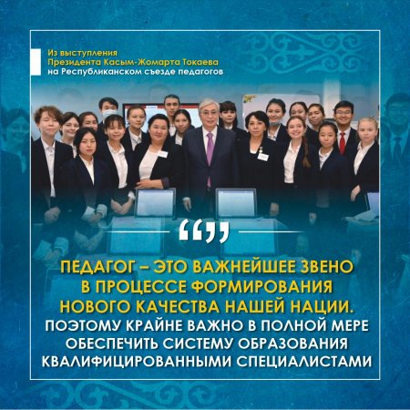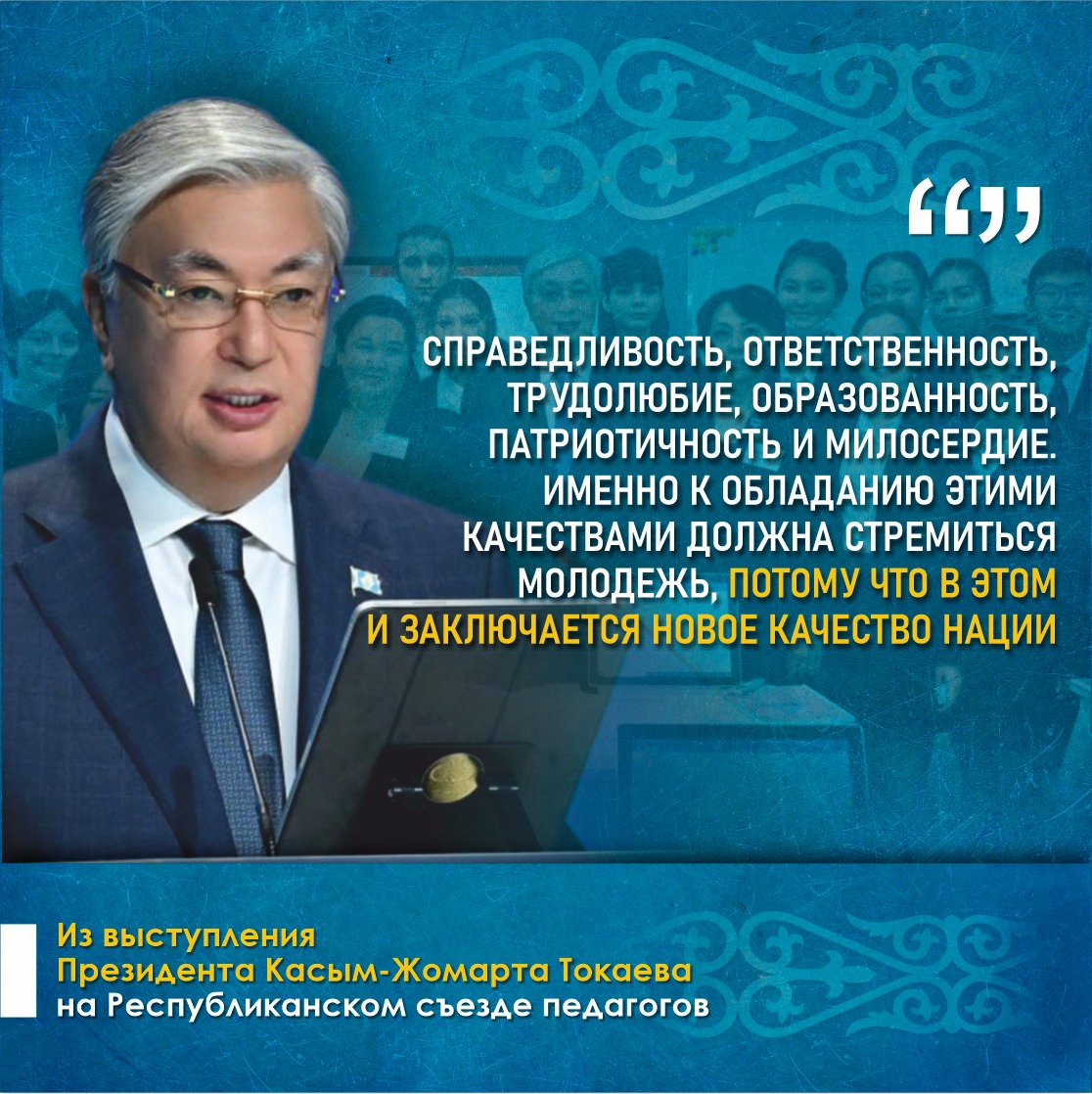 ҚР Президенті Қасым-Жомарт Тоқаевтың I Республикалық педагогтер съезінде сөйлеген сөзінен!