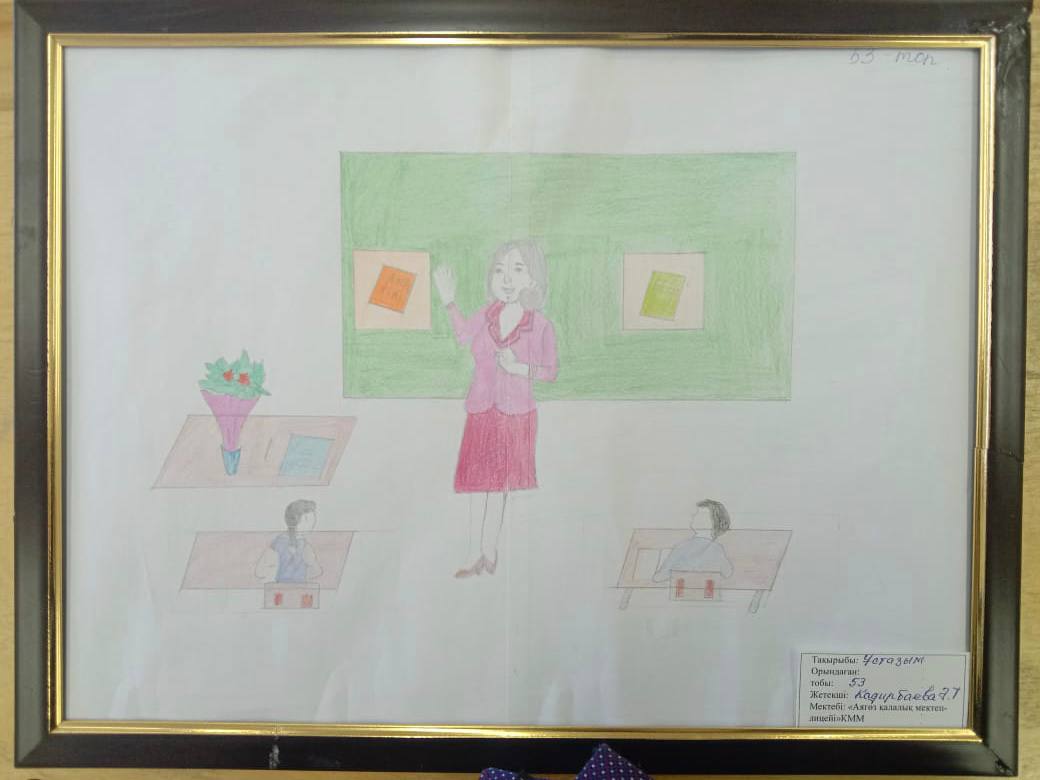 Абай облысы білім басқармасы Аягөз ауданы білім бөлімінің "Қалалық қазақ мектеп-лицейі" КММ-де Мұғалімдер күніне орай 5-8 сынып оқушылары арасында "Адал және сатылмайтын еңбек адамының бейнесі" тақырыбында суреттер байқауы өтті. Мақсаты: Өскелең ұрпақтың арасында жалпыға бірдей еңбек, адалдық және сатылмаушылық идеяларын мінез-құлық нормасын сақтау, сыбайлас жемқорлыққа қарсы іс-қимылға бағытталған шаралардың қабылдануы мен нығайтылуына ықпал ету, сыбайлас жемқорлыққа қарсы оқушылардың санасын қалыптастыру және қазақстандық патриотизм сезімін нығайту, мемлекеттің сыбайлас жемқорлыққа қарсы саясатының жүзеге асырылуына оқушыларды тарту. Байқау қорытындысы: I-орын 72-топ оқушысы Ерланова Іңкәр; II-орын 51-топ оқушысы Жақсыберген Әсем, 61-топ оқушысы Темірғалиева Ақниет; III-орын 53-топ және 62-топ оқушылары.