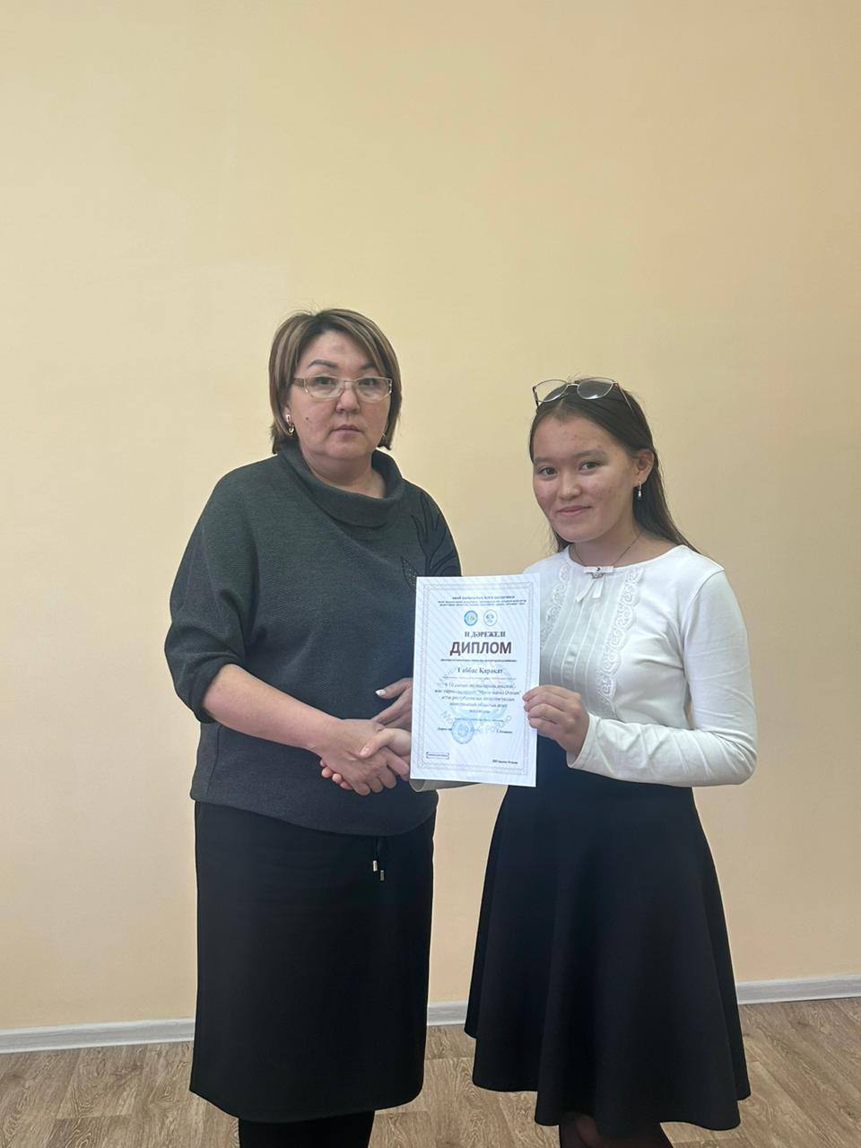 16 қазан 2023 жылы Абай облысы білім басқармасының «Дарындылық пен қосымша білім беру дамытудың ғылыми әдістемелік «Дарын» орталығы» КМҚК 9-10 сынып оқушыларына арналған жас тарихшылардың “Менің шағын Отаным” атты республикалық интеллектуалдық конкурсының облыстық кезеңінің “Шағын Отанымның символы” номинациясы бойынша 2-орын жеңімпазы 101-топ оқушысы Ғаббас Қарақатты құттықтаймыз! Жетекшісі, тарих пәнінің мұғалімі: Саманбетова Жанар Айболқызы